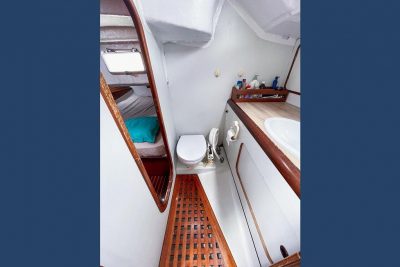 The interior layout is particularly functional and comfortable for cruising with crew and/or living aboard with 2 double cabins with 2 attached heads.