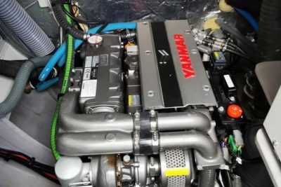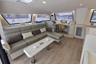 The onboard comfort is unparalleled: air conditioning, heating, hot water heater, three electric toilets, washing machine, dishwasher, fully equipped galley, wine cooler and coffee machine. Life on board is made easier thanks to a complete upholstery, a rigid bimini, aft cushions, a cockpit table, courtesy lighting and underwater spotlights. For relaxation and entertainment, the Fusion audio system with AM/FM radio and integrated speakers creates a pleasant atmosphere at all times.