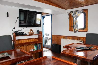 The owners of the M/Y INDEPENDENCE currently live on board and offer their boat as guest accommodation for a unique experience that can accommodate around ten people. You can also easily invite several dozen people on board this boat, which was originally designed to accommodate up to 110 passengers and can support 34 tons of cargo. It is currently registered under the Polish flag as a recreational boat and meets the French NUC standard.