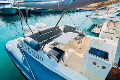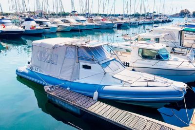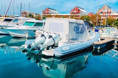 Hauled out each winter, it has undergone thorough maintenance: Engine maintenance by the manufacturer and annual antifouling. Additionally, the tubes have been serviced and the valves replaced in 2022. The upholstery and covers also date from 2022 and are in excellent condition.