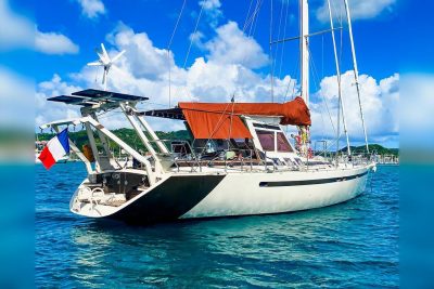 Alumarine 55 de propriétaire construit en 1998 en version 4 cabines doubles sur plans de Guy Ribadeau Dumas. Voilier monocoque en aluminium de grand voyage alliant robustesse, sécurité et confort. Ce bateau a été pensé pour les navigateurs exigeants et les grands horizons. Sa coque en forme lui confère une excellente rigidité structurelle, une grande longévité et une sérénité totale en navigation hauturière, y compris dans les zones les plus engagées. Gréé en sloop, il offre un plan de voilure équilibré, puissant et performant, facilement manœuvrable en équipage réduit, tout en restant capable d’avaler les milles avec régularité et confort.
