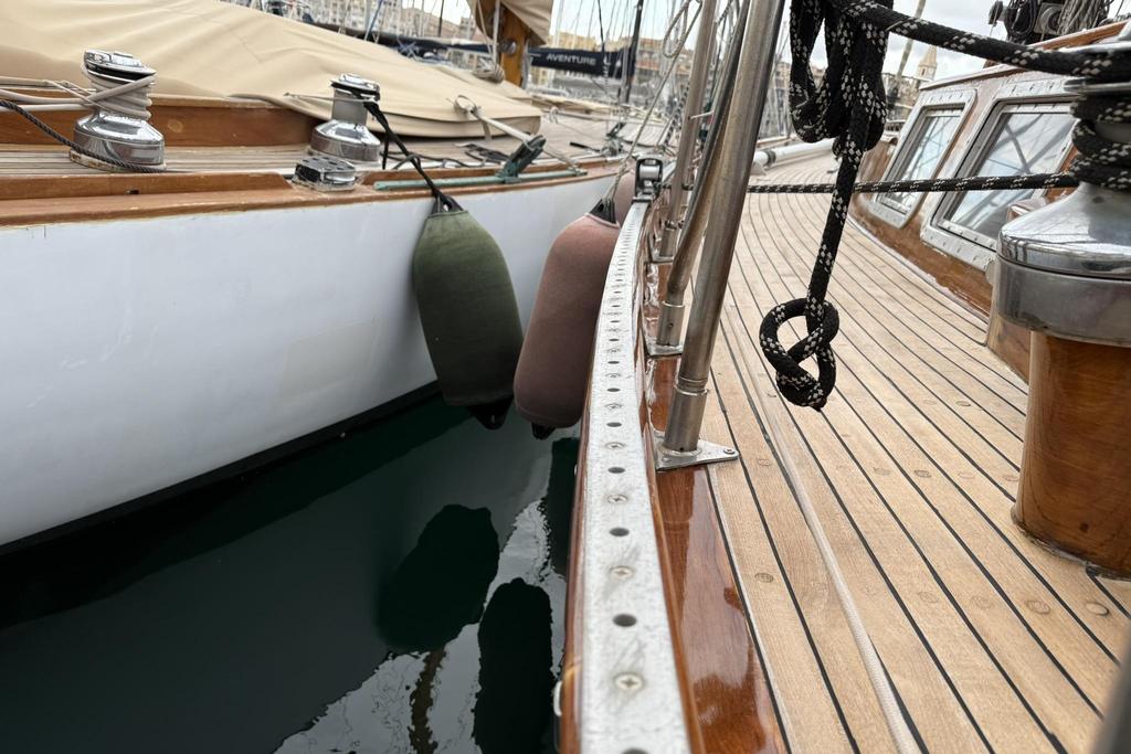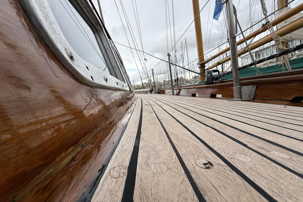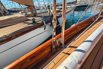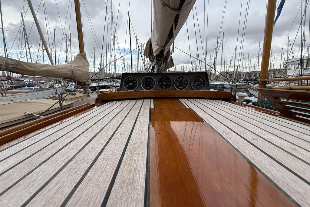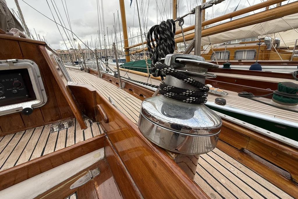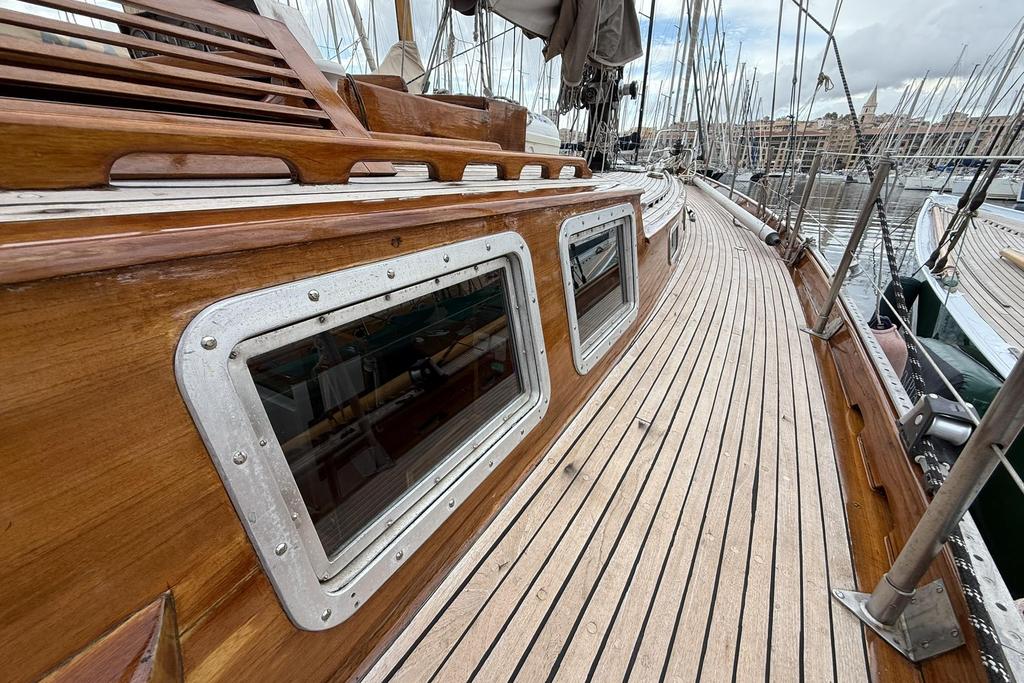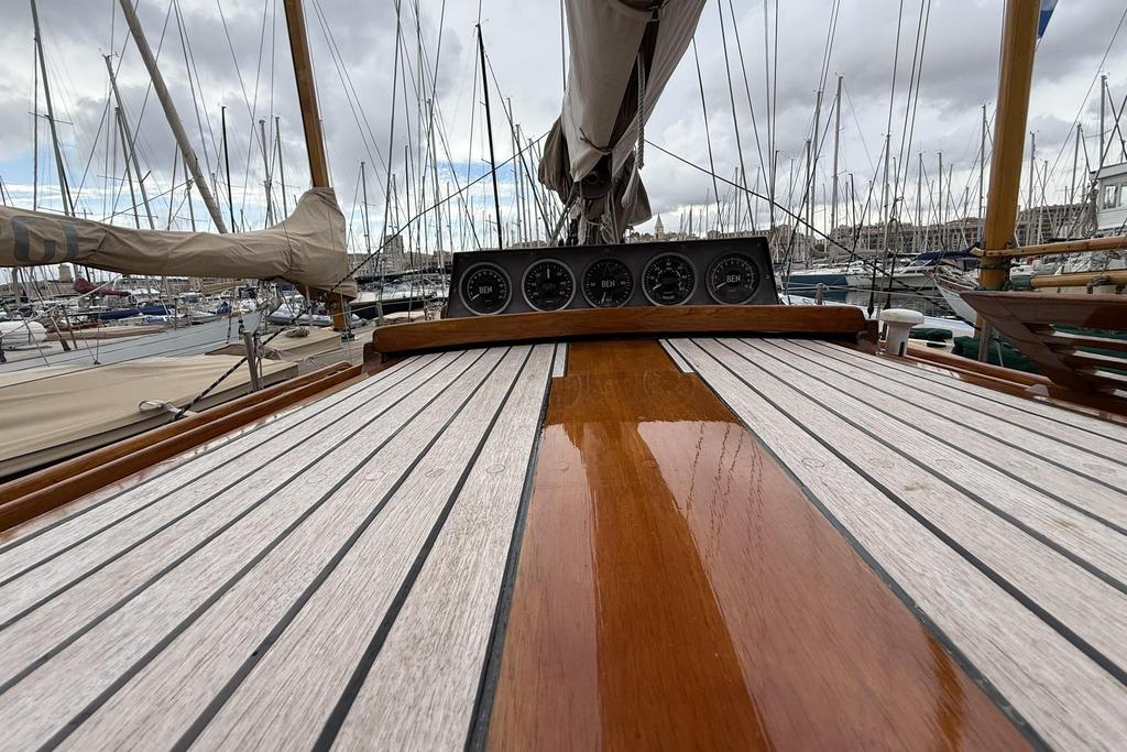 Ce bateau prestigieux allie élégance intemporelle, excellente tenue en mer et confort pour la croisière ; il offre un intérieur chaleureux en boiseries, un cockpit profond propice à une navigation sûre et agréable, et bénéficie d’un historique prestigieux sur le circuit classique français. L’entretien a toujours été suivi avec soin, et une documentation complète est disponible.
