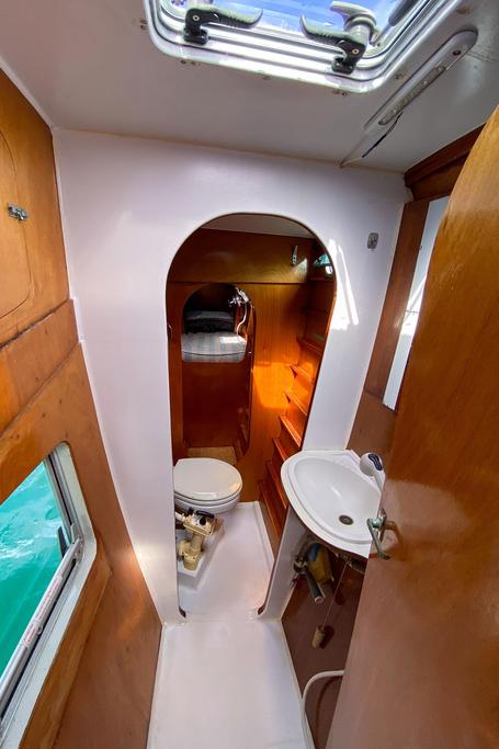 Le voilier dispose d’un jeu de voiles très complet et en bon état : grand-voile, deux solents, deux trinquettes, tourmentin, spinnaker, gennaker et code 55. L’électronique est complète et fonctionnelle. Le gréement dormant a été remplacé en 2024, les moteurs in-board en 2019 (750 heures de fonctionnement), le parc de batteries en 2023, ainsi qu’une nouvelle annexe AB de 3,50 m de 2024 avec son moteur hors-bord Yamaha 15 cv également de 2024.