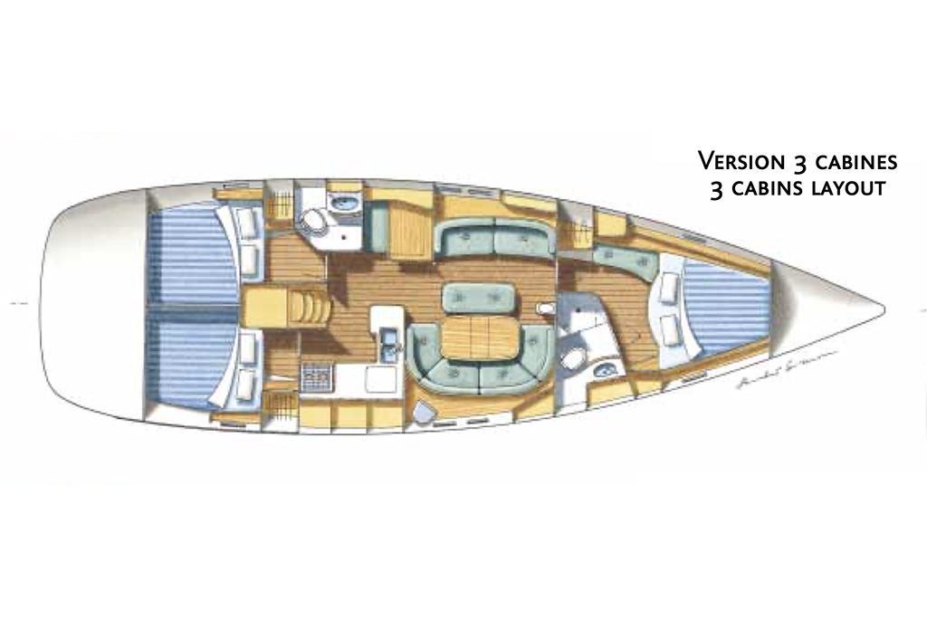 Ce bateau est une version propriétaire toutes options, avec 3 cabines doubles et 2 salles de bain. Après avoir navigué en Méditerranée, il a traversé l’Atlantique lors du rallye ARC fin 2023 et dispose de tous les équipements de sécurité requis par l’organisation (radeau de survie, EPIRB, gilets avec balise AIS, etc., le tout de 2023). Le gréement a été vérifié et partiellement remplacé. Un dessalinisateur a été installé, ainsi que des panneaux solaires. Il est également équipé d’un propulseur d’étrave et de la climatisation. La coque a été récemment polie et l’antifouling a été refait en octobre 2025.