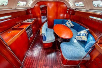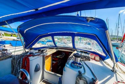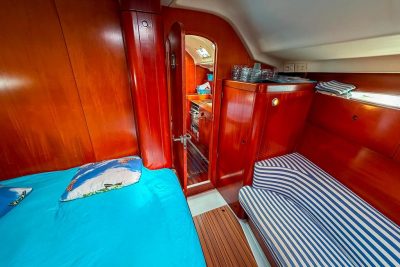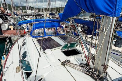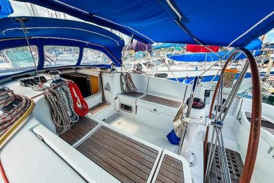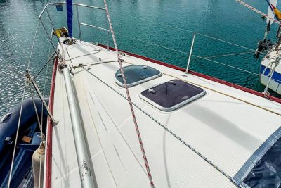 Ce bateau bénéficie d’un excellent niveau d’autonomie, avec 600 litres d’eau douce et 300 W de panneaux solaire. Il a été rigoureusement suivi et entretenu, reflet d’un bateau de propriétaire soigneux. De nombreuses mises à jour récentes viennent renforcer son attrait : passe-coques récents de 2024, électronique partiellement renouvelée en 2025, parc batteries remplacé en 2024, jeu de voiles complet et en bon état, moteur affichant environ 3 000 heures, parfaitement entretenu et en excellent état de fonctionnement, dernier antifouling réalisé en janvier 2026, cockpit en teck refait à neuf en 2023, annexe en hypalon avec deux moteurs…