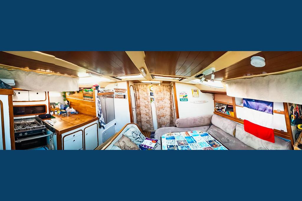 Océanis 430 de 1988, version 3 cabines, doté d’un faible tirant d’eau de 1,55 m, idéal pour la navigation hauturière comme pour le mouillage côtier. Ce voilier a bénéficié d’un refit complet et approfondi, avec près de 80 000 € de travaux récents factures à l’appui. Préparé avec soin pour un tour du monde en solitaire ou en équipage réduit, ce bateau se distingue par sa fiabilité, sa facilité de manœuvre et son excellent niveau d’équipement. Il s’agit d’un bateau prêt à naviguer, pensé pour l’autonomie, la sécurité et le confort sur le long voyage.