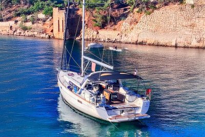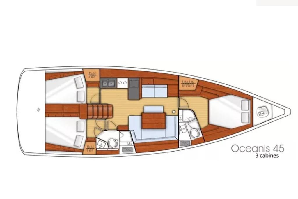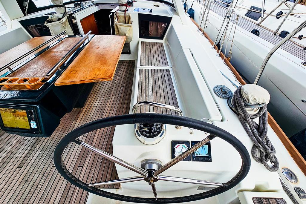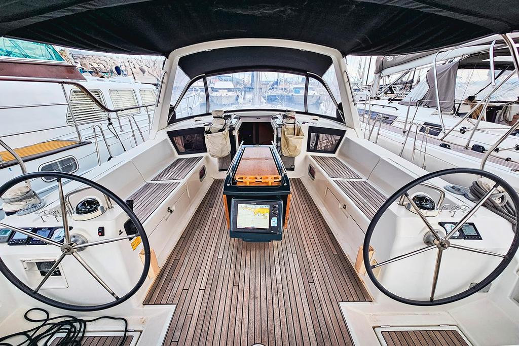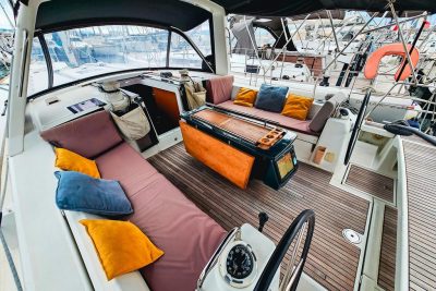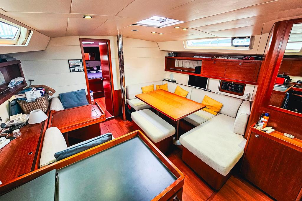 La circulation à bord est sécurisante : les passavants sont larges et de nombreuses mains courantes sont présentes dans le cockpit comme dans la descente. L’électronique Simrad offre une navigation précise et agréable. L’Oceanis 45 est réputé pour son confort en navigation, ce qui en fait un voilier idéal pour la croisière en famille ou entre amis.