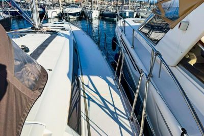 Ce modèle excelle par sa carène moderne large, son cockpit spacieux avec table fixe et accès plage arrière, et ses finitions haut de gamme – parfait pour un usage familial ou locatif premium.