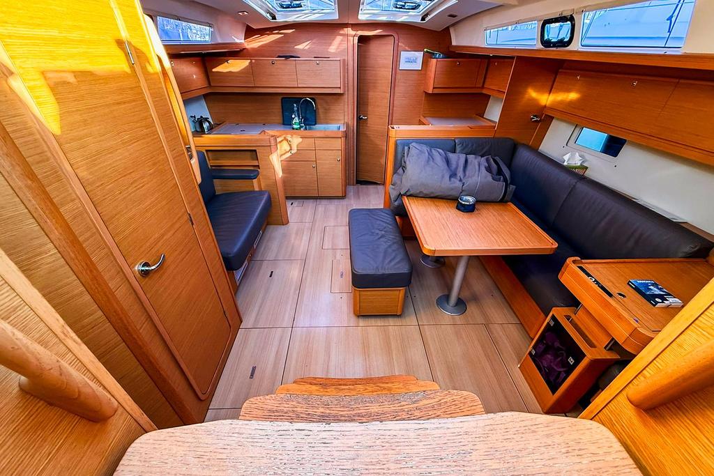 Magnifique Dufour 460 Grand Large de 2019, version 3 cabines, conçu par Umberto Felci pour allier performances et confort exceptionnel. Longueur hors-tout 14,15 m, largeur 4,50 m, tirant d'eau 2,20 m, déplacement 10 760 kg – un voilier stable et marin idéal pour la croisière hauturière.