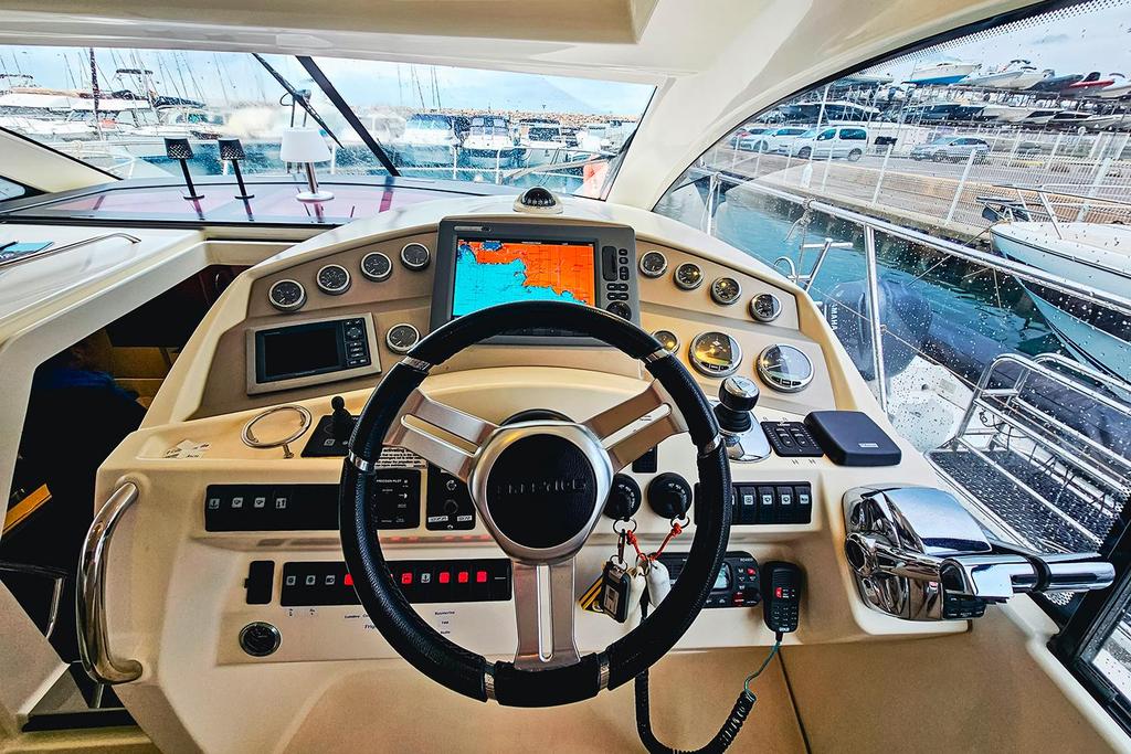 Pour un confort de navigation optimal, le bateau est doté d’une électronique Raymarine complète : sondeur, radar, pilote automatique, VHF, propulseur d’étrave, joystick de commande et système de position stationnaire. Ce qui facilite les manœuvres dans les ports, notamment en cas de trafic important.