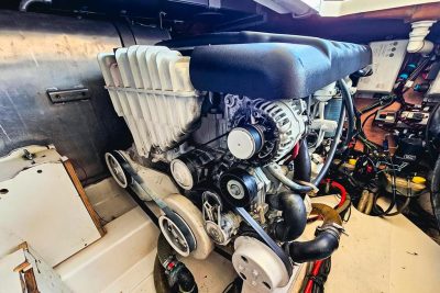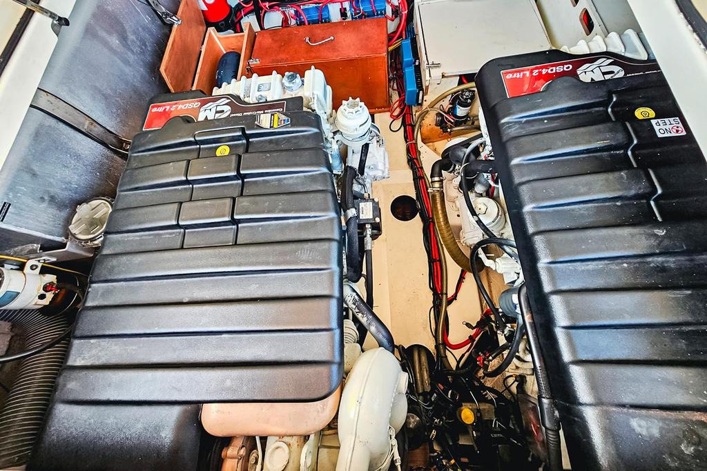 Côté motorisation, cette unité est équipée de deux moteurs Cummins QSD 4.2 litres de 320 CV chacun, associés à une transmission en Z Drive. Les moteurs totalisent seulement 460 heures et ont toujours été entretenus par des professionnels.