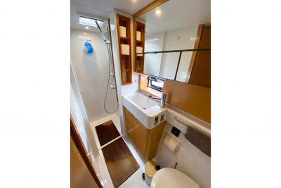 Cette unité n’a connu que deux propriétaires et n’a jamais été louée. Elle a appartenu pendant 10 ans à un couple de propriétaires basé dans un port de la Manche, qui l’a utilisée occasionnellement pour des navigations locales, et toujours rigoureusement entretenue. Les propriétaires actuels l’ont acquise en janvier 2024 et l’ont préparée en France pour un projet de voyage au long cours en binôme (refit électrique et électronique complet, achat de certaines voiles d’avant neuves et de nombreux équipements modernisés).