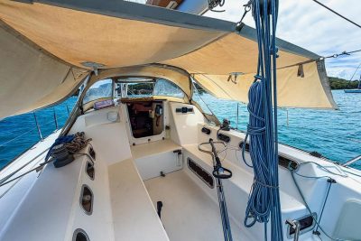 Bateau autonome équipé d’un panneau solaire récent de 415 W (possibilité d'augmenter la capacité sur le portique) et d’une très belle capacité en eau douce de 520 L (répartis dans les deux ballasts). Jeu de voiles en bon état, complet et polyvalent, comprenant : une grand-voile, un génois et 2 trinquettes. Parfait pour s’adapter à toutes les conditions. Navigation simple et efficace avec un pilote automatique récent, un régulateur d’allure et une électronique complète et fonctionnelle.
